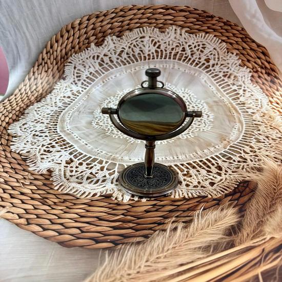 финиш: Полированная антикварная или блестящая латунная поверхность, добавляющая винтажный шарм любой столешнице или каминной полке.