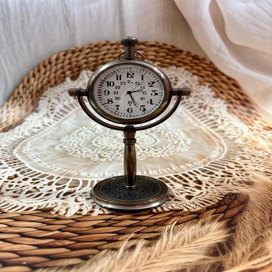 Эти латунные настольные часы, чудесно изготовленные с прочной металлической подставкой и превосходным мастерством, придадут вневременную красоту любому окружению.. Этот красивый предмет сочетает в себе функциональность и привлекательность, что делает его идеальным для офисных столов, жилых зон или в качестве подарка на особый случай.