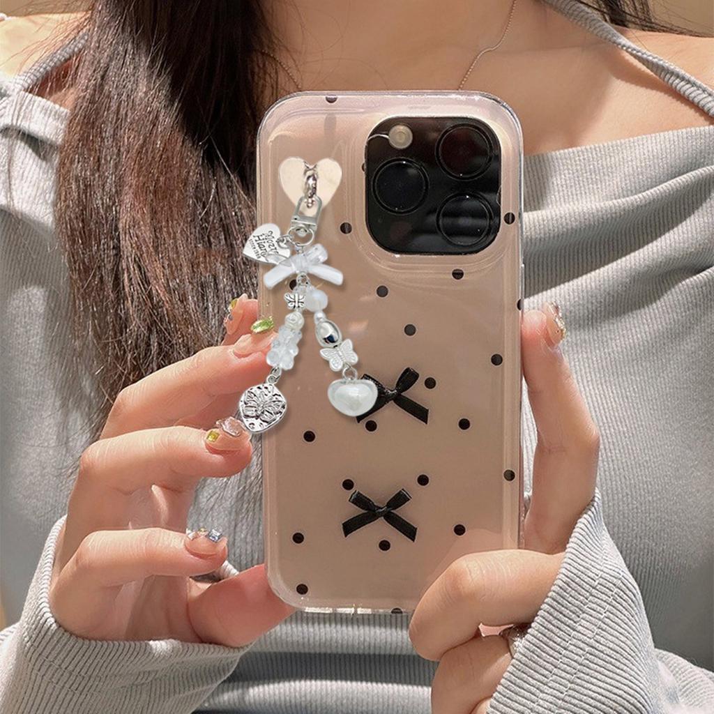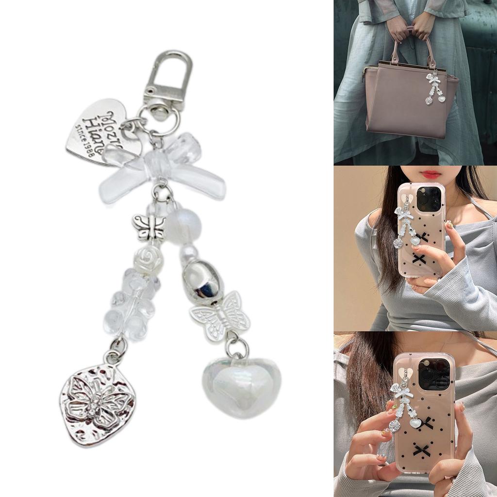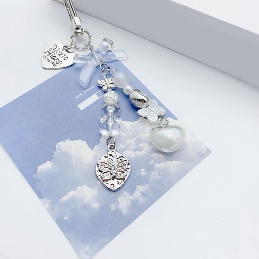 Шнурок для телефона 'Сердце бабочки' Брелок-подвеска с бусинами в виде медведя Элегантные ремешки для мобильного телефона Стильный аксессуар для кошелька