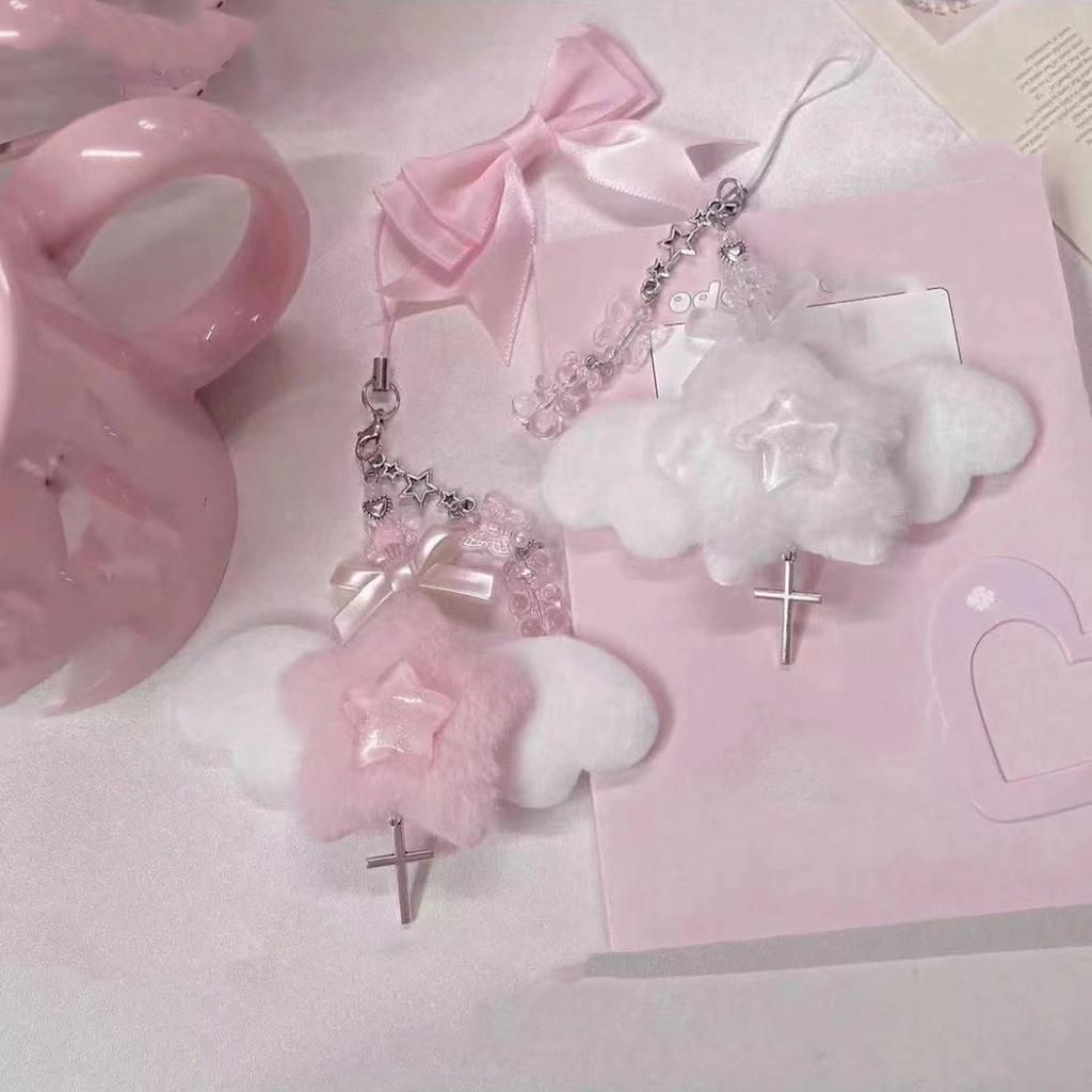 Handmade Beaded Phone Chain Wing Bowknot Pendant Phone Chain Bag Charm Stylish Phone Accessory for Fashion Enthusiasts