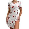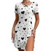 Женская ночная рубашка контрастного цвета с принтом в виде сердца, сборками по краю, декором в виде банта, разрезом по низу, свободные короткие рукава, летнее платье для сна