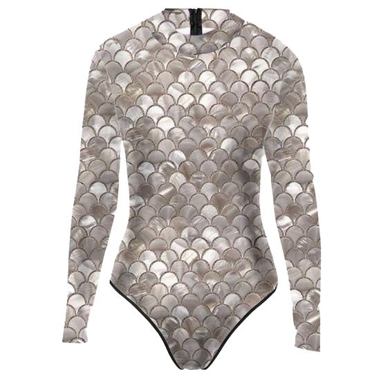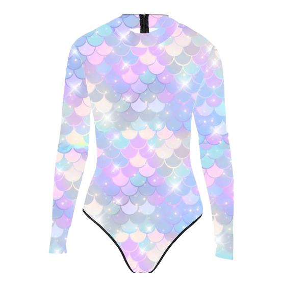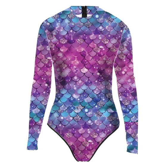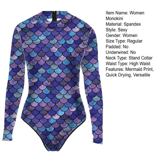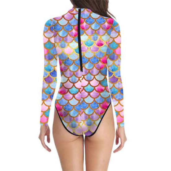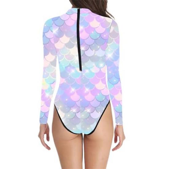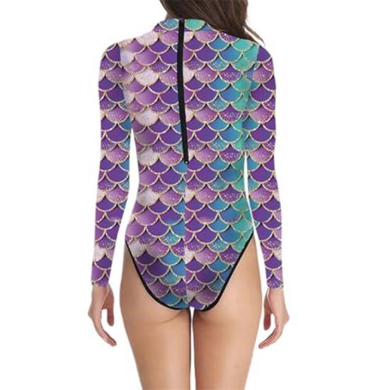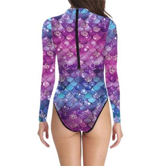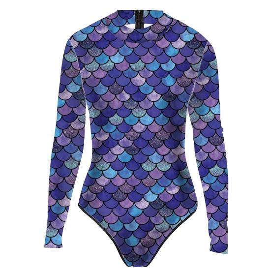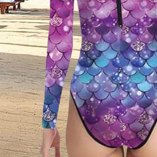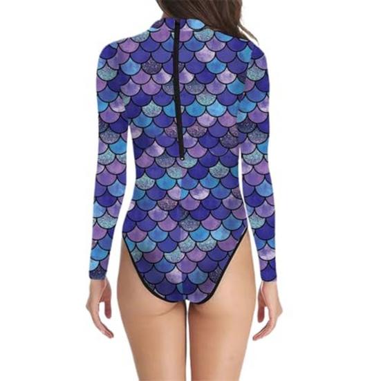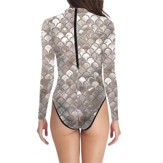 Произведите фурор с этим женским купальником с длинными рукавами! Этот купальник с модным 3D-принтом и удобной молнией сзади одновременно стильный и удобный в носке.. Эластичная ткань обеспечивает удобную посадку, что делает ее идеальной для любого случая.. Красивый принт в виде рыбьей чешуи добавит блеска, выделив вас на встречах или в повседневной жизни.