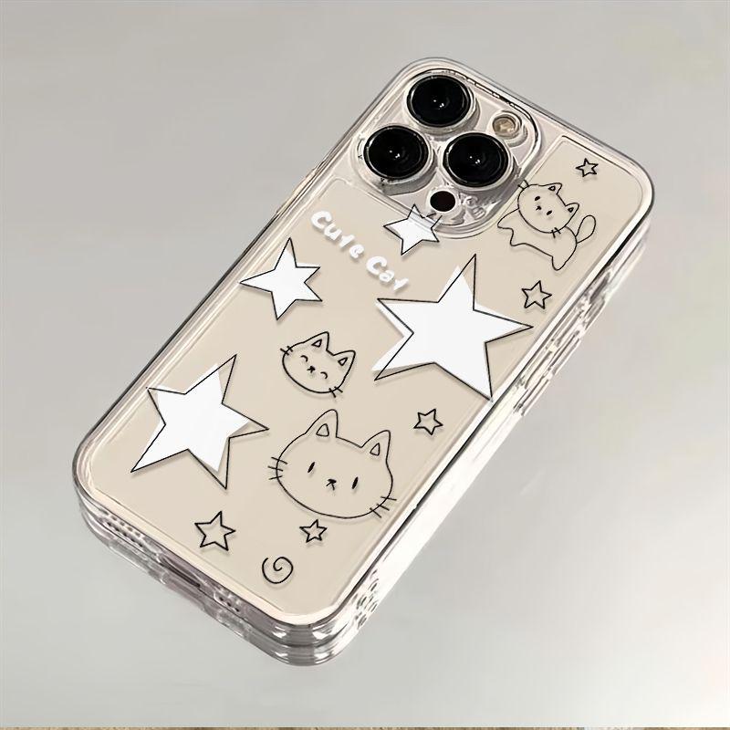 Защитите свой iPhone этим очаровательным чехлом с мультяшным котом, разработанным для моделей 13, 14, 15, 16 и XS/ProMax. Его милый прозрачный дизайн позволяет цвету вашего телефона просвечивать, добавляя игривый акцент в виде маленьких звездочек.. Изготовлен из прочного ТПУ. (термополиуретан), этот чехол обеспечивает отличную защиту от царапин и падений, сохраняя при этом тонкий и легкий профиль. Наслаждайтесь идеальным сочетанием стиля и функциональности с легким доступом ко всем портам и кнопкам.