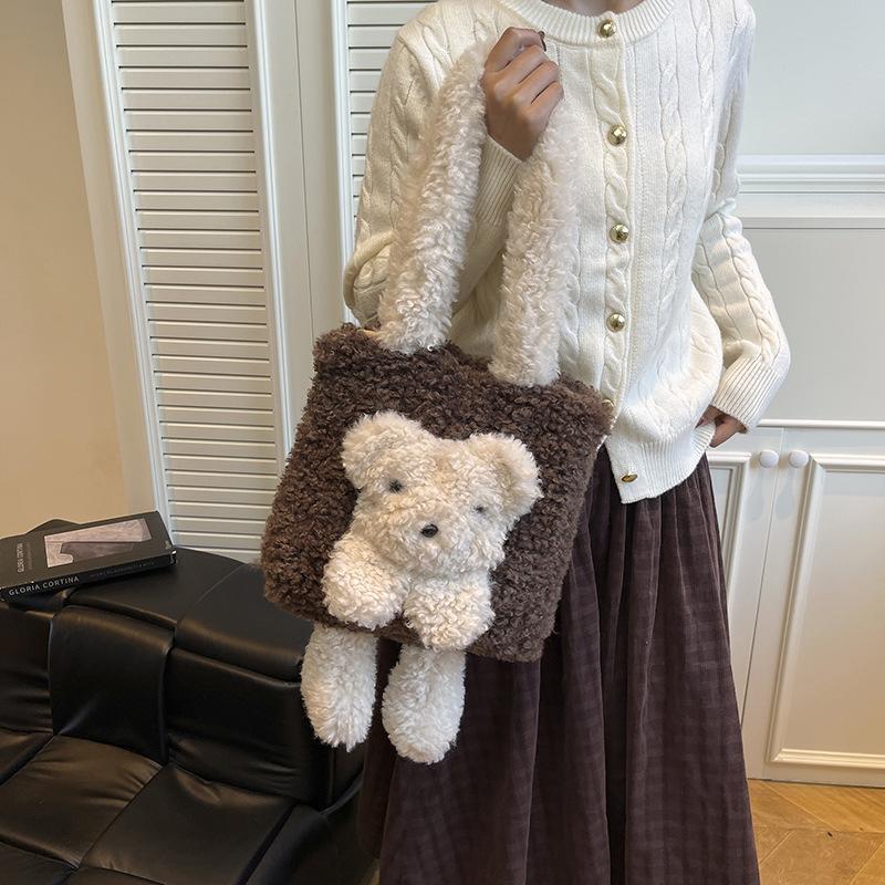Вместительная сумка-ведро, милая сумка-подмышка с мультяшным медведем, сумка через плечо для поездок на работу