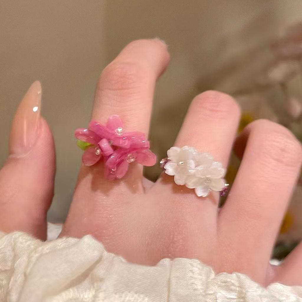 Изготовленное из эластичных бусин и акрила, это акриловое кольцо с цветком фиалки обеспечивает гибкую посадку для разных размеров пальцев, сочетая комфорт с цветочной элегантностью.