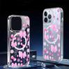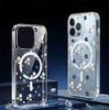 Маленький фиолетовый чехол с цветочным принтом и магнитом для iPhone 15/16/17 Pro Max - Прозрачный с полным покрытием