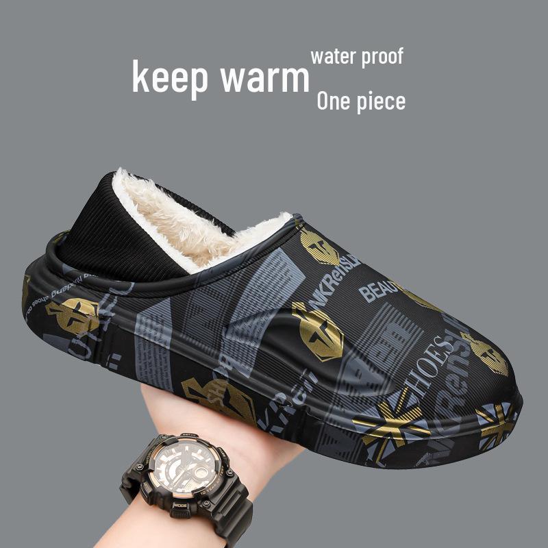 Мужские зимние водонепроницаемые хлопковые тапочки на флисовой подкладке - Большой размер, двойного назначения, с задником, полутапочки для улицы и дома
