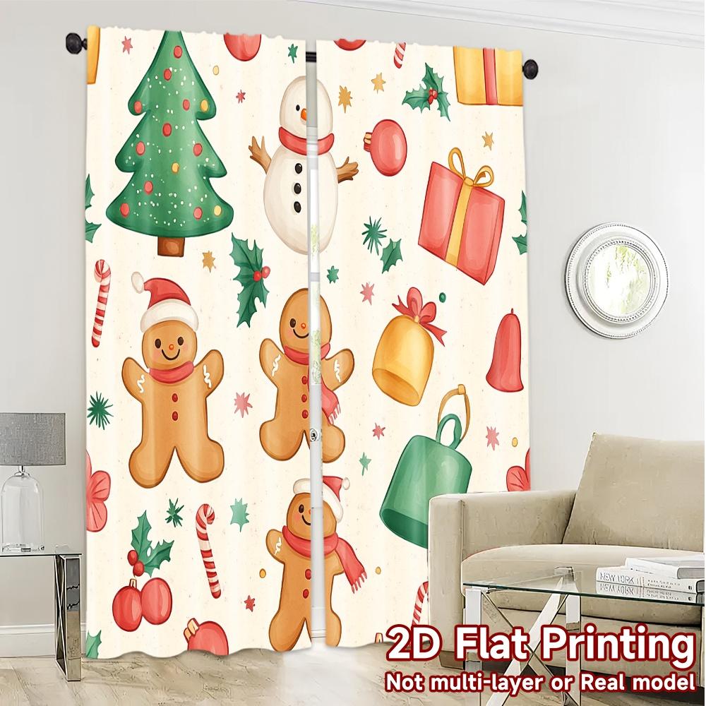 2pcs,Curtains Christmas Cute Elements (3) Print Popular Curtains Yarn Curtains Art Deco Festive Use for Semi-Transparent Living