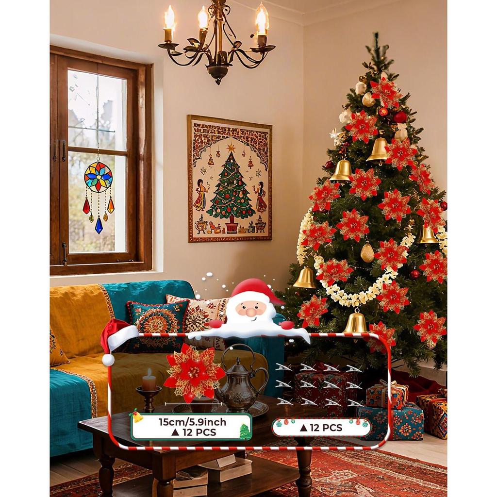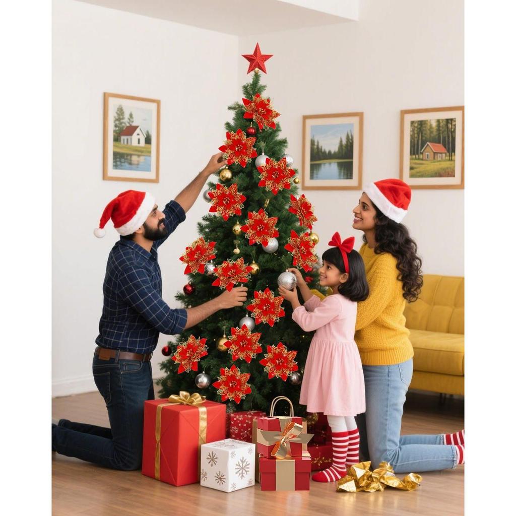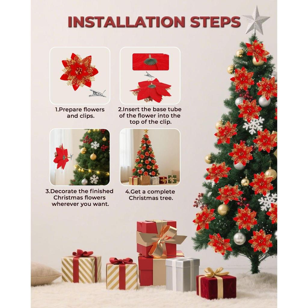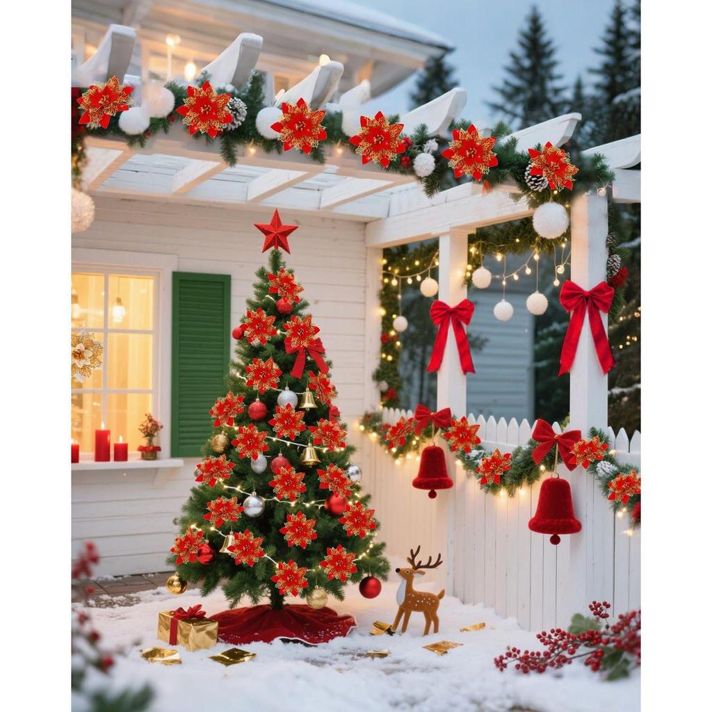12 шт. Красные рождественские пуансеттии, цветы, украшение, искусственные цветы для украшения рождественской елки, подходят для домашних рождественских украшений