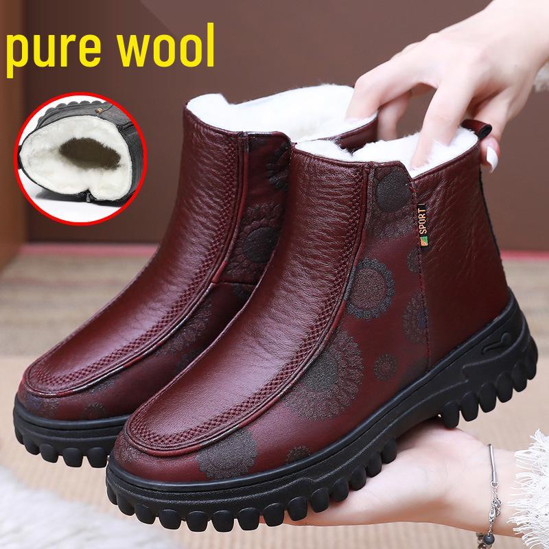 Женские шерстяные зимние ботинки: Нескользящая, Мягкая подошва, Теплый хлопок для людей среднего и пожилого возраста