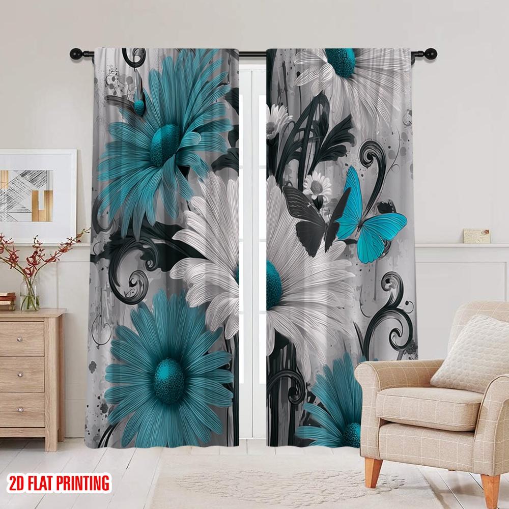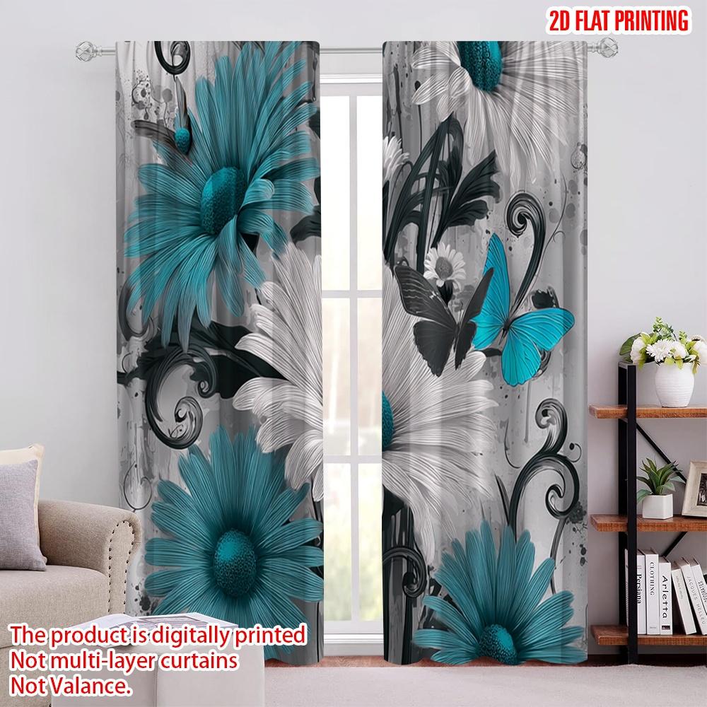 2 шт., 2D печать на плоской ткани для штор, Бабочка, Цветение, Универсальный полиэстер (без удилища) Внутренние украшения для сезонного домашнего декора