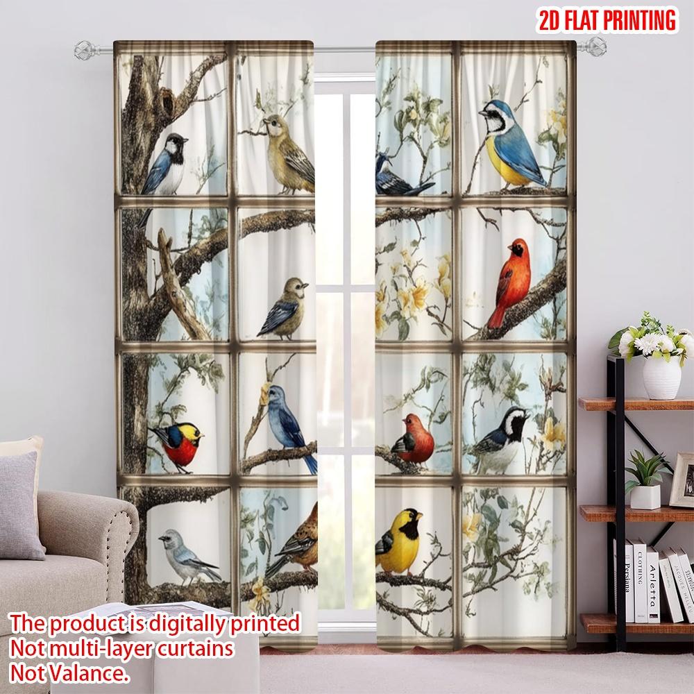 2 шт., шторы с 2D-печатью, цифровая печать «Птицы гармонии», полиэстер (без стержня) Декор комнаты для гостиной и спальни,