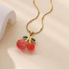 Новое креативное трехмерное ожерелье с подвеской в виде вишни, материал подвески из титановой стали, серия фруктов, цепочка для ключицы, подвеска с буквой