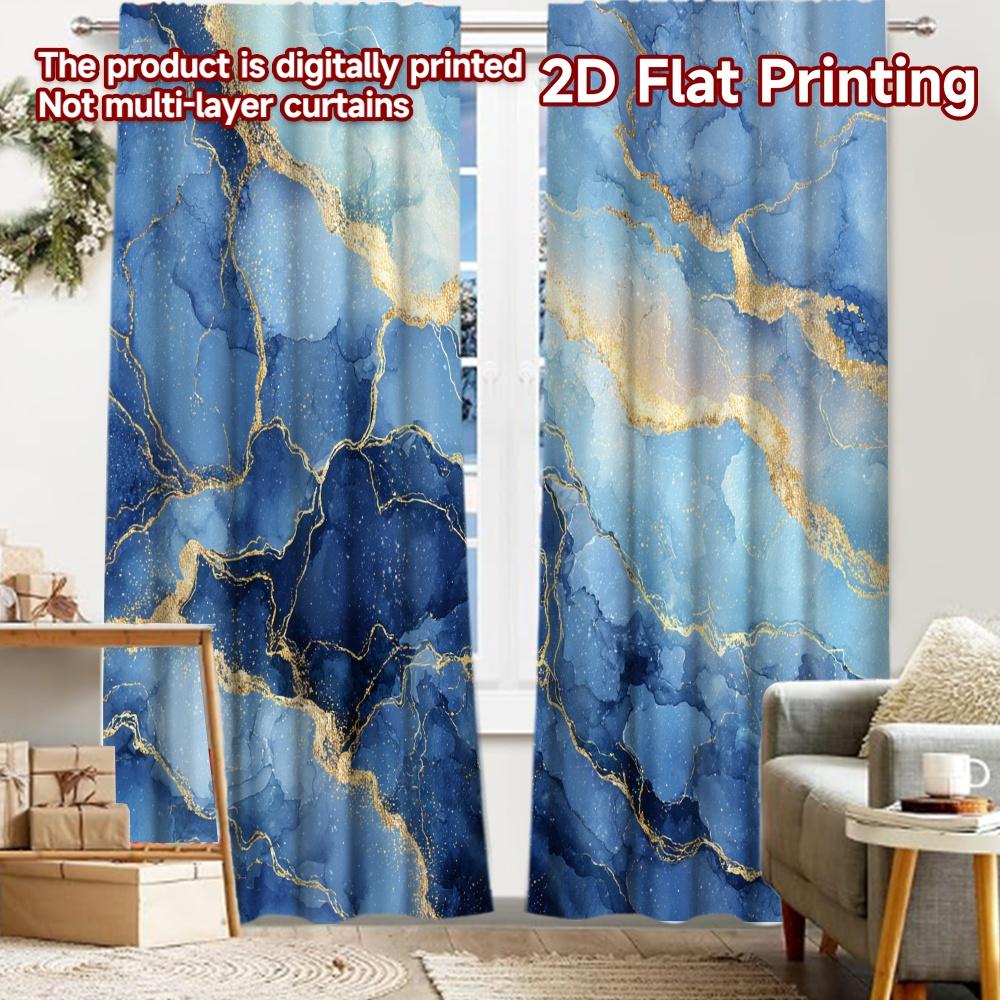 2 шт., Шторы с плоской 2D-печатью (Без Рода) Синие Мраморные Прожилки Праздничные Хэллоуин Рождественские Принтованные Шторы Универсальные Прочные