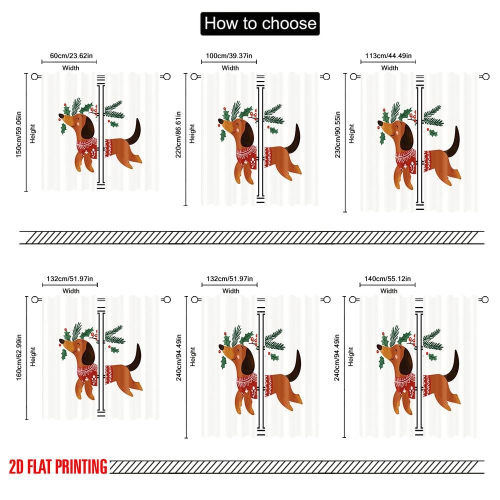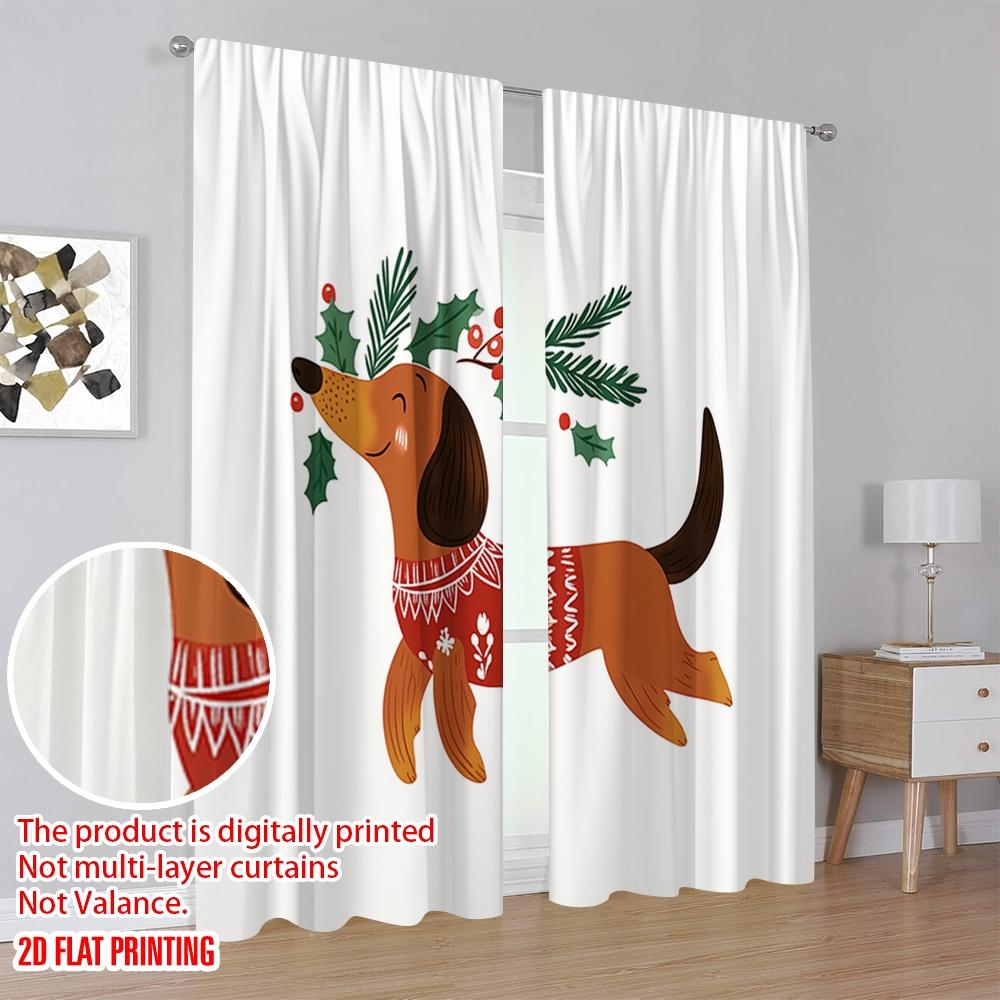2 шт., 2D плоская печать Популярные шторные панели Рождественский такса олень собака (4) Полиэфирная ткань (без удилища) Праздник для