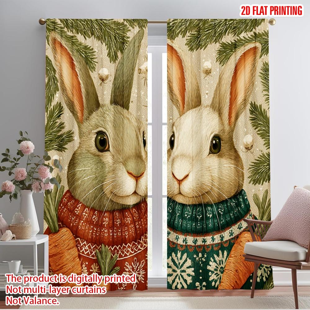 2 шт., 2D плоскостная печать Шторы и оконное оформление Кролик с сосновыми ветками и снежинками Полиэстер (без удилища) Украшения для