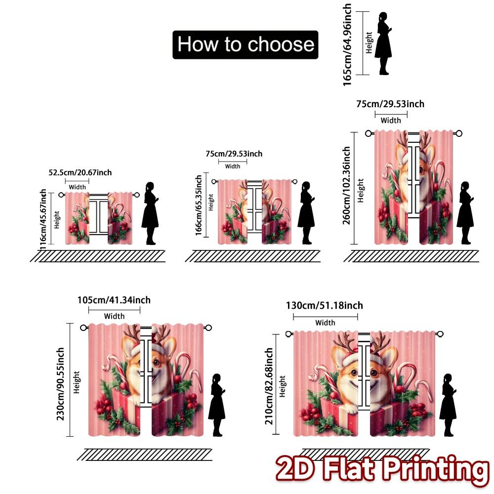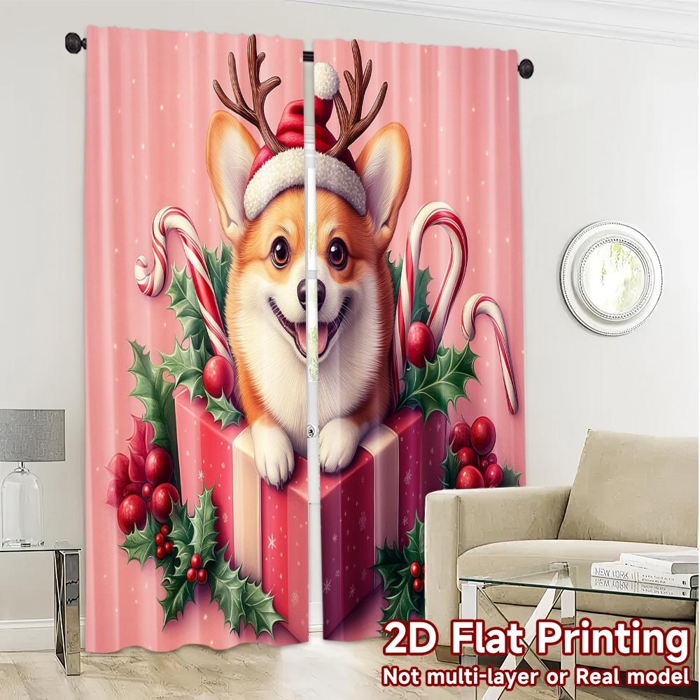 2 шт., Шторы Рождественский Корги Подарок Праздничный Собачий Узор Популярные Шторы Универсальные Шторы из Полиэстеровой Ткани Праздничный Идеал для