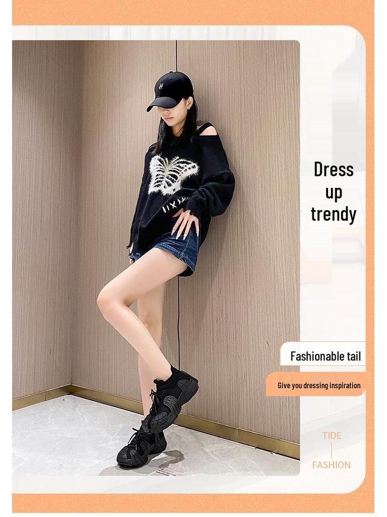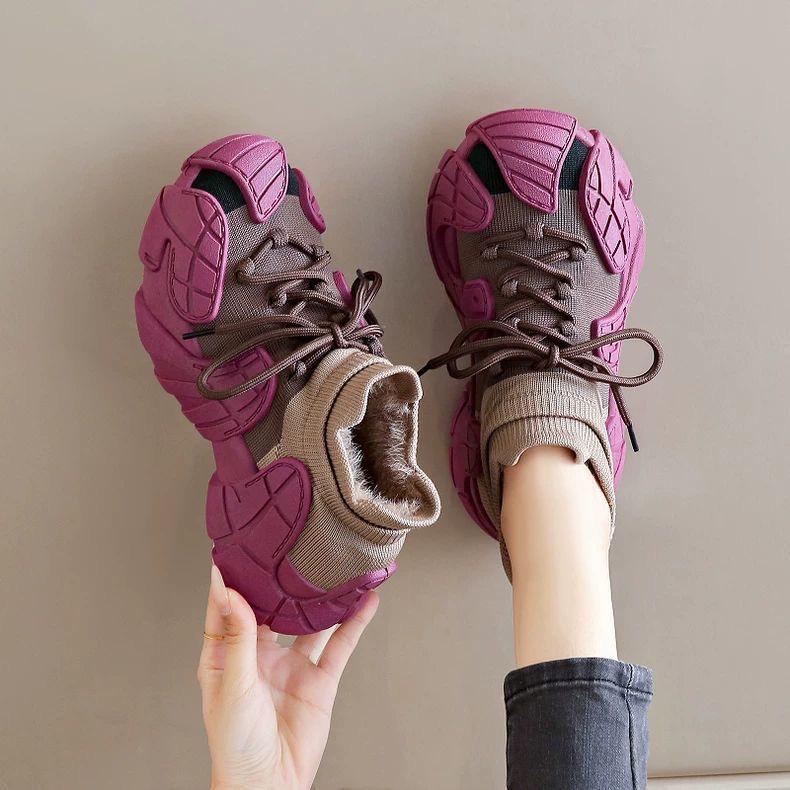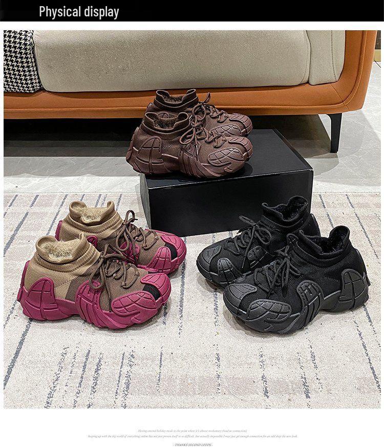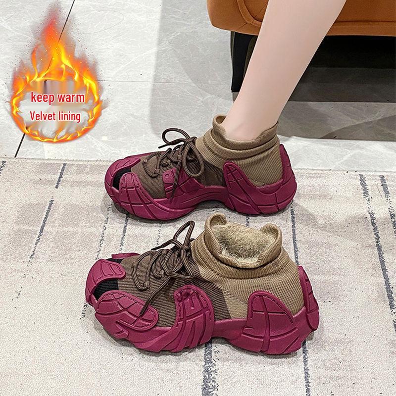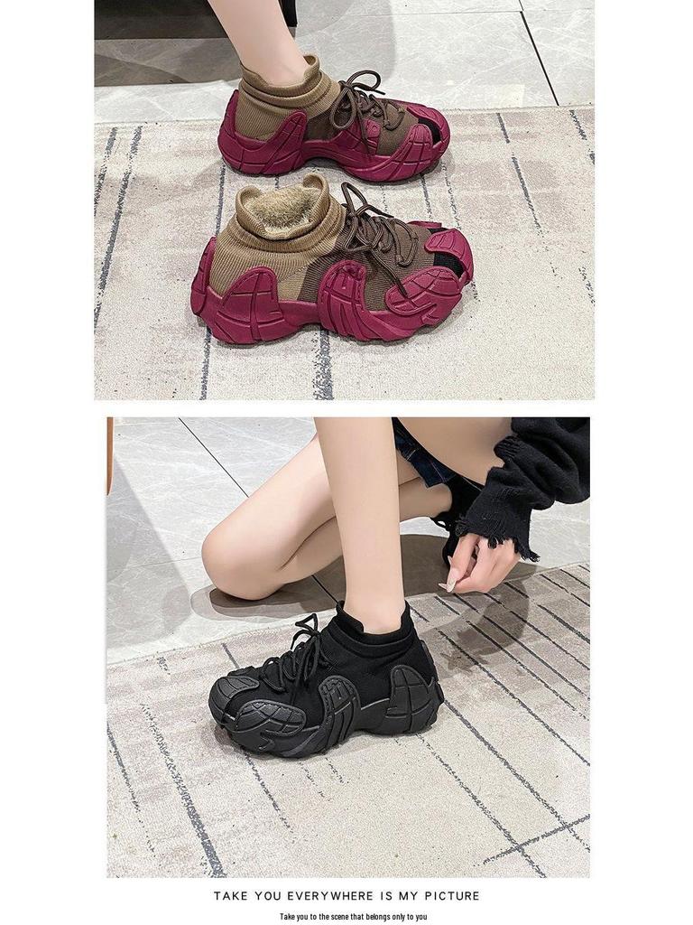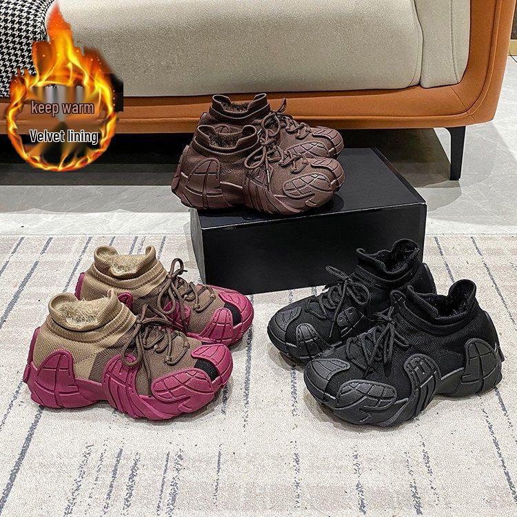 Женские хлопковые кроссовки на толстой подошве с флисовой подкладкой, из трикотажа: Повседневная обувь носочного типа больших размеров