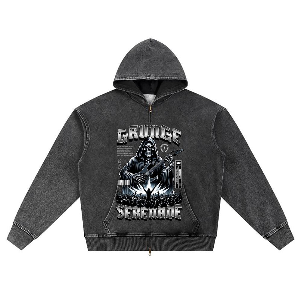 Худи на молнии из вязаного денима с DTG-принтом, футболка Grunge Serenade, худи на молнии с принтом Brother