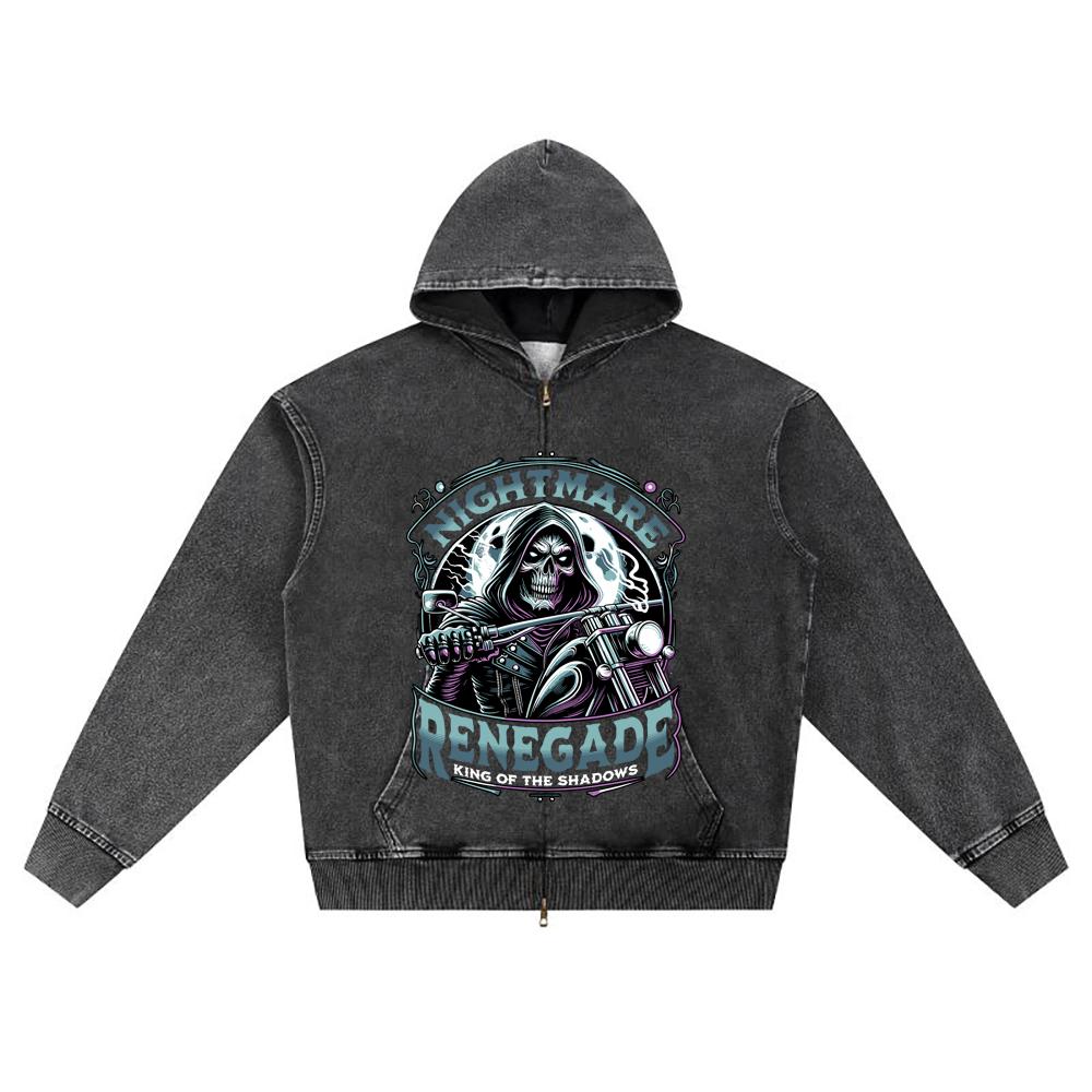 Худи на молнии из вязаного денима с принтом DTG, уличная одежда, мотоциклетная, с принтом Brother, худи на молнии