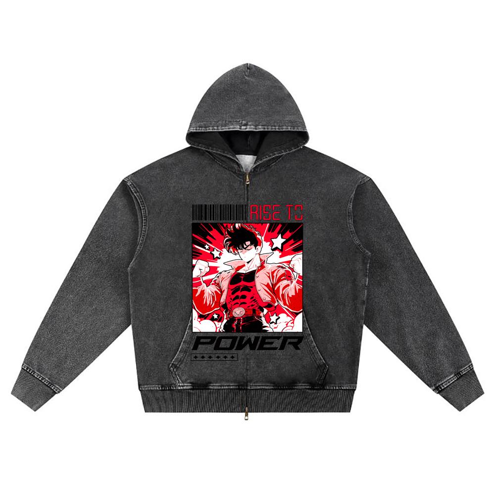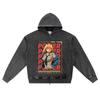 DTG-печать Вязаный Деним Худи на Молнии Power Аниме Мальчик Брат Принт Толстовки на Молнии