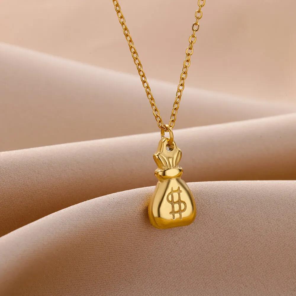 Популярное ожерелье-подвеска в виде мешка с деньгами, женское, из титановой стали с золотым покрытием, не тускнеющее, ретро, подвеска в виде богатства, с золотым покрытием