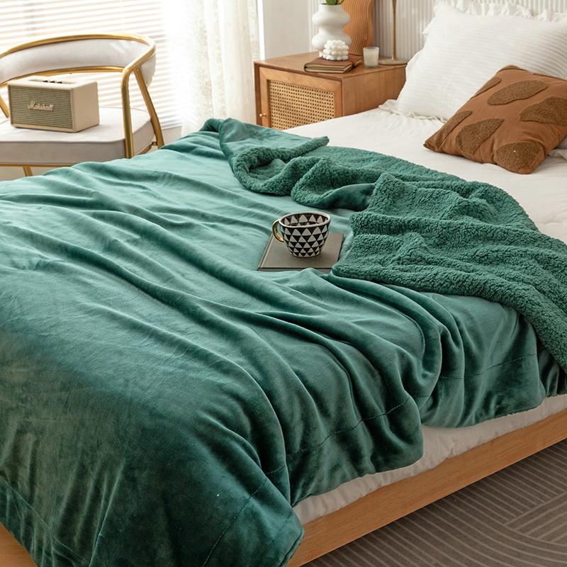 Двухслойное зимнее одеяло из кораллового флиса с овечьей шерстью - Композитное одеяло из фланели размером 50x60 дюймов.