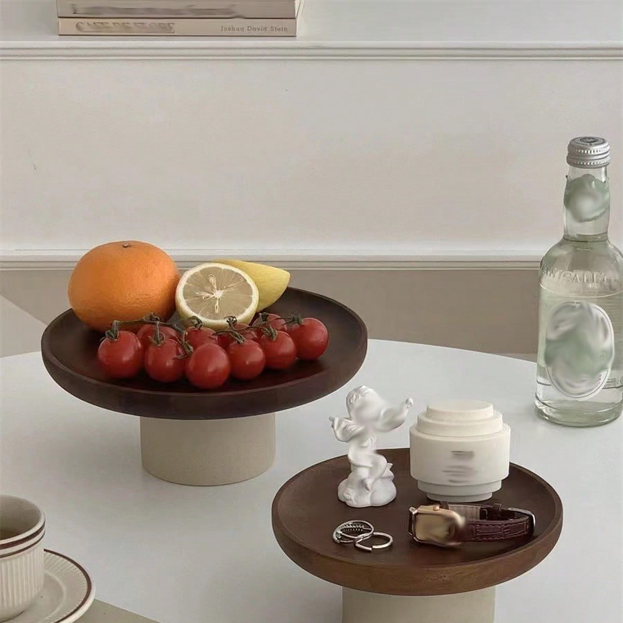 Vintage Acacia Wood Jewelry Tray Japanese Style Serving Tray For Living Room Fruits Snacks Desserts Ceramic Display Stand