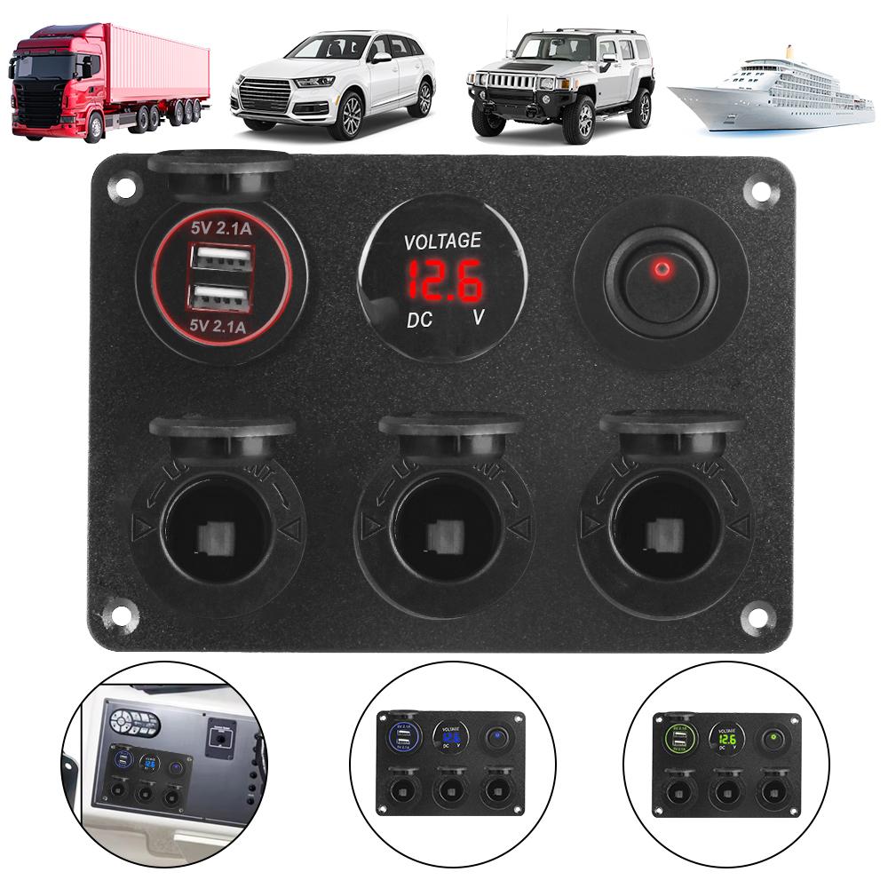 24V 12V Splitter Car Cigar Lighter Socket Power Distribution Switch Panel 5 Ports Power Adapter With USB Chargers 3.0 Voltmeter