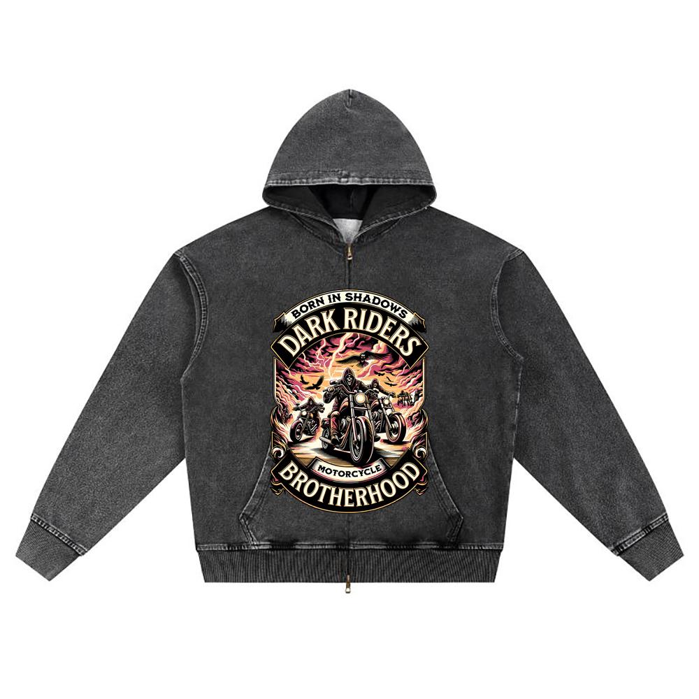 Худи на молнии из вязаного денима с принтом DTG, уличная одежда, мотоциклетная, с принтом Brother, худи на молнии