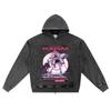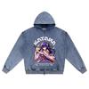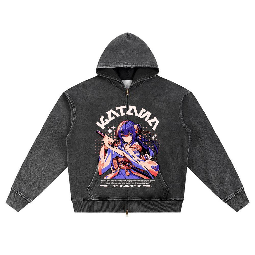 DTG-печать Вязаный Деним Худи на Молнии Katana Аниме Японская Уличная Одежда Принт Брата Толстовки на Молнии