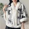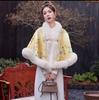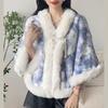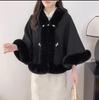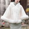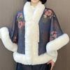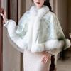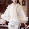 931# Женский универсальный плащ ципао: Шаль с воротником из искусственного меха выдры, на флисовой подкладке, утолщенная для тепла
