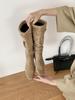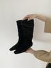 Женские ботильоны из овчины в французском нишевом стиле с острым носком, на танкетке, со сборками, в ковбойском стиле, 2025