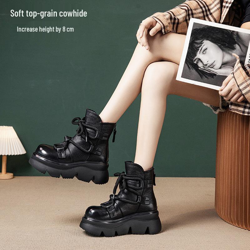 Женские ботинки Мартина на платформе из натуральной кожи - Осень/Зима 2025, Ретро стиль, Идеально подходят к юбкам для ношения на улице.