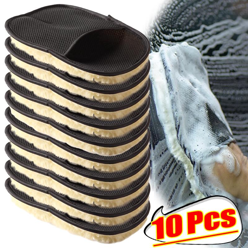 Imitation Wool Car Cleaning Gloves Ultra Absorbent Microfiber Mitts Scratch Safe Wash Pad for Vehicle Bike Home Care Gloves10Pcs