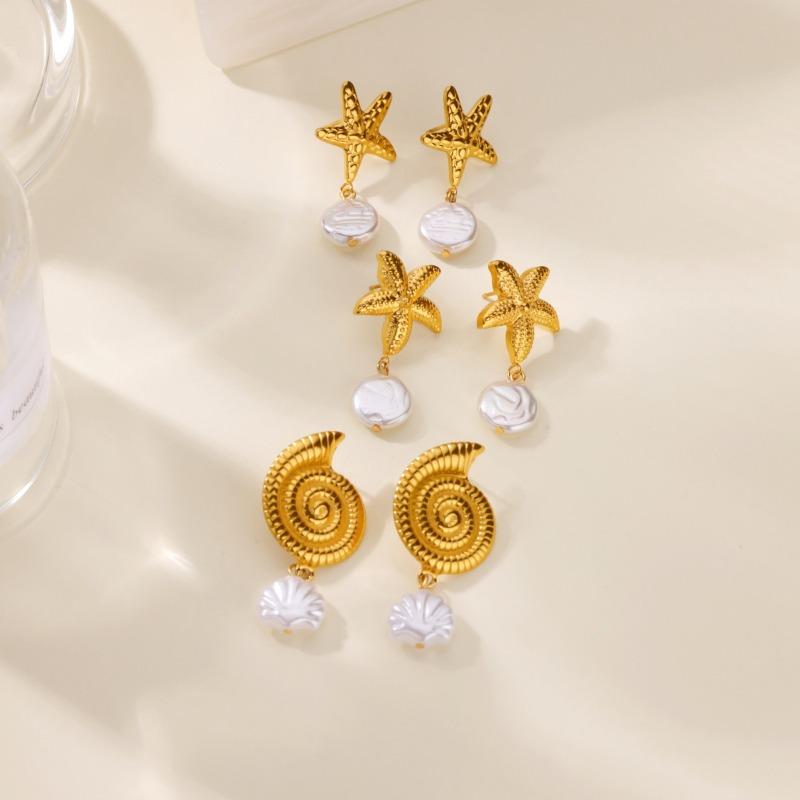Модные нишевые серьги из нержавеющей стали с изысканным дизайном в виде раковины морской звезды и жемчужиной, легкая роскошь, универсальные, приморские украшения, новинки — купить товар онлайн с бесплатной доставкой по всему миру!