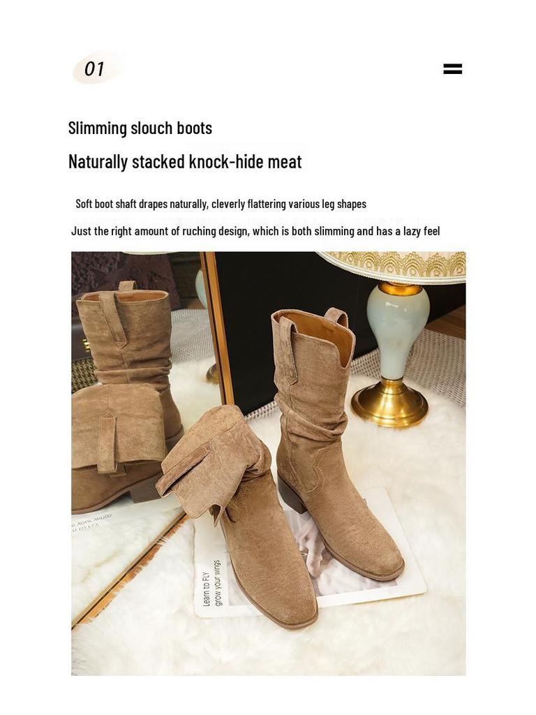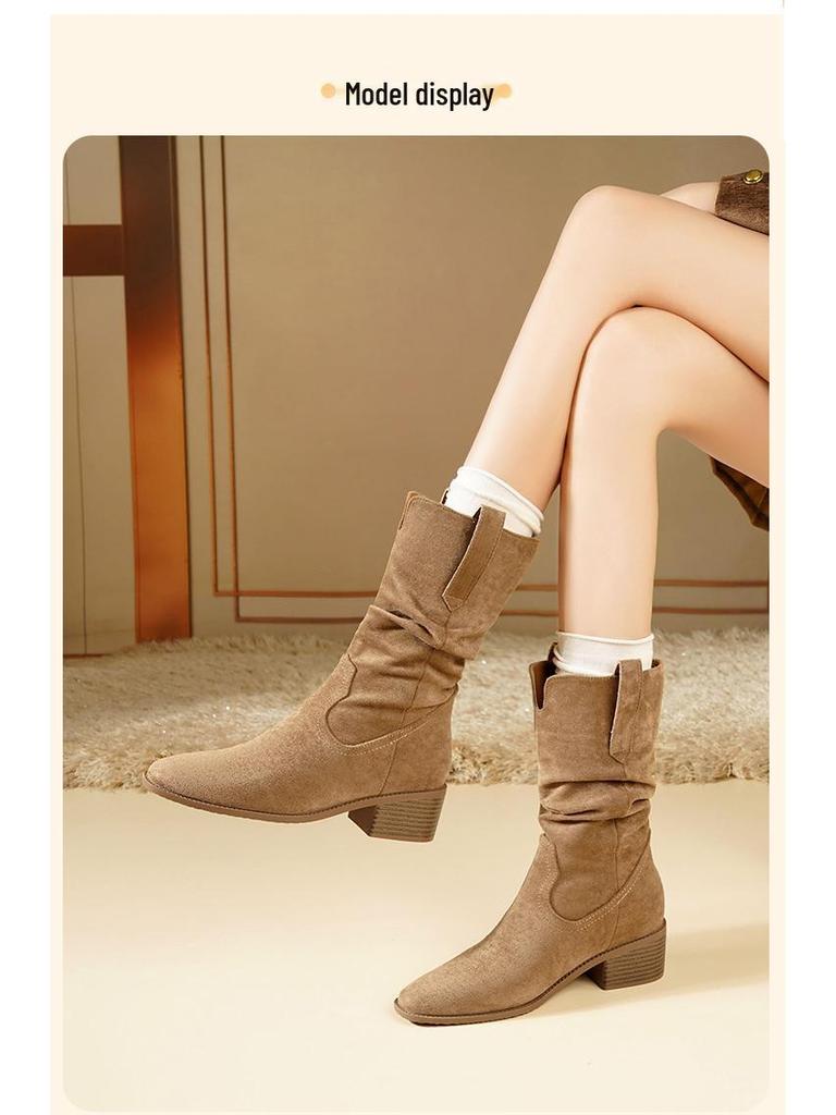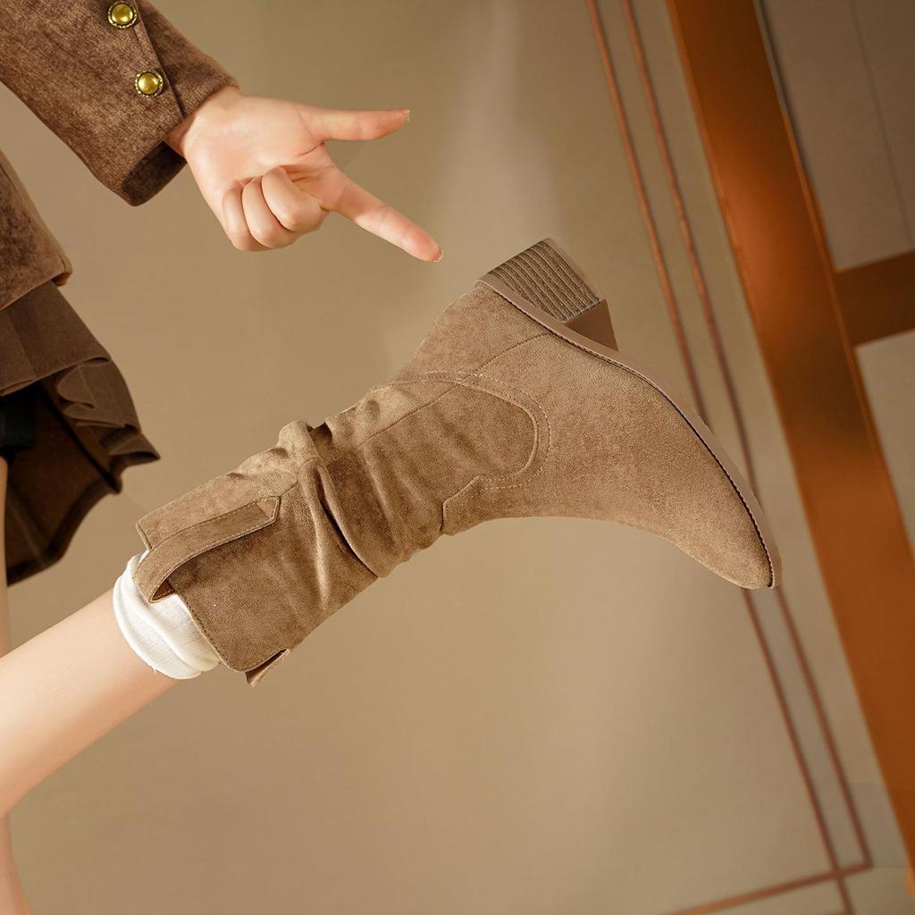 Мартин Замшевые Женские Ботильоны со Скрытым Каблуком - Новинка Осень/Зима 2025, Ботильоны до середины икры на высоком каблуке