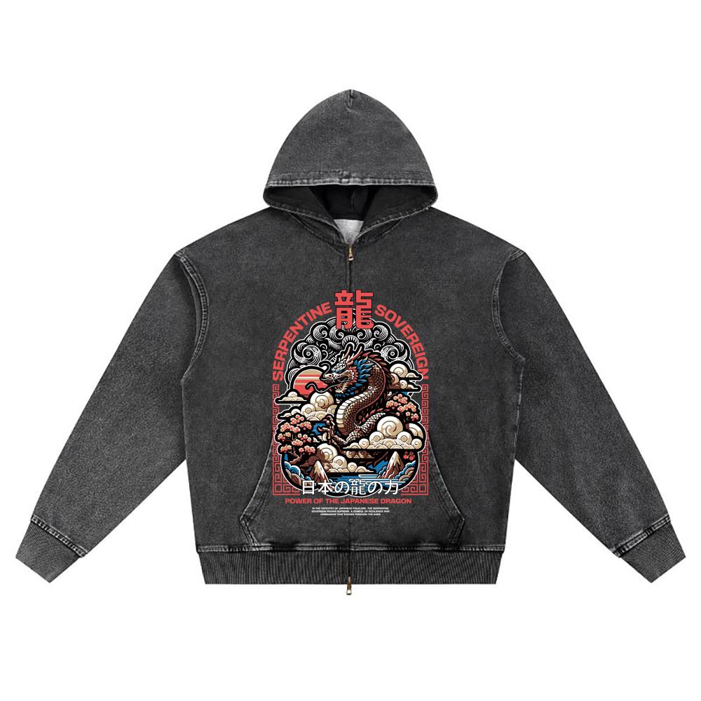 Худи на молнии из вязаного денима с DTG-принтом, Япония, Самурай, Брат, Толстовки на молнии