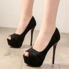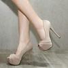 Весна 2025 12 см Туфли-стилет на высоком каблуке - Европейский и американский стиль, Сексуальная замша, Остроносая платформа, Туфли для ночного клуба с открытым носком