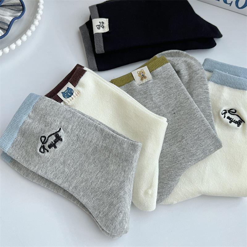 Женские весенне-осенние простые носки средней длины с махровым переплетением и вышивкой в виде животных