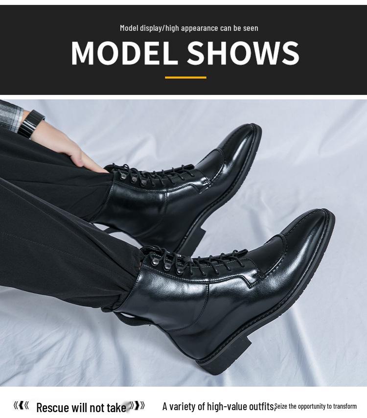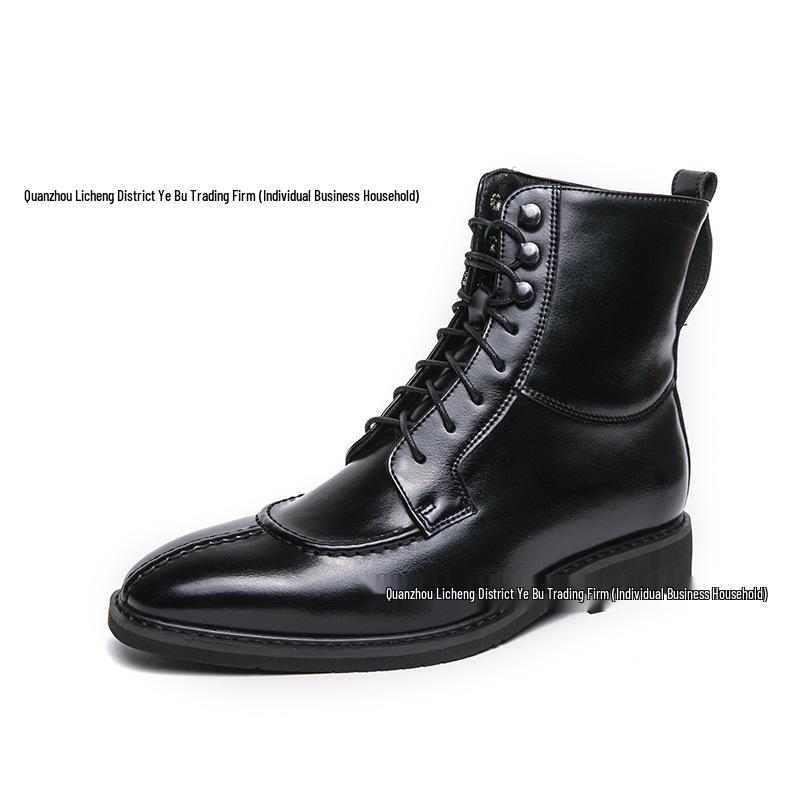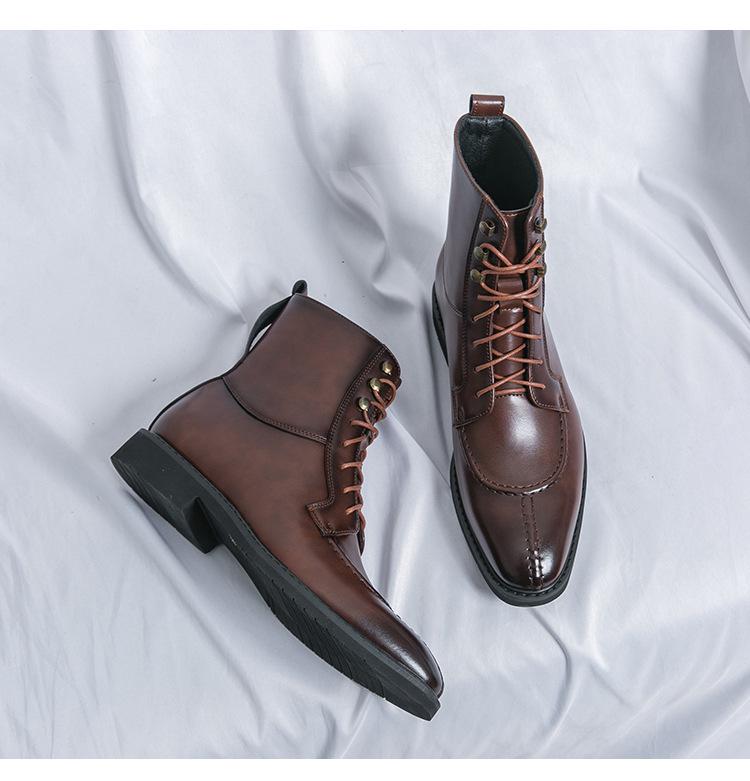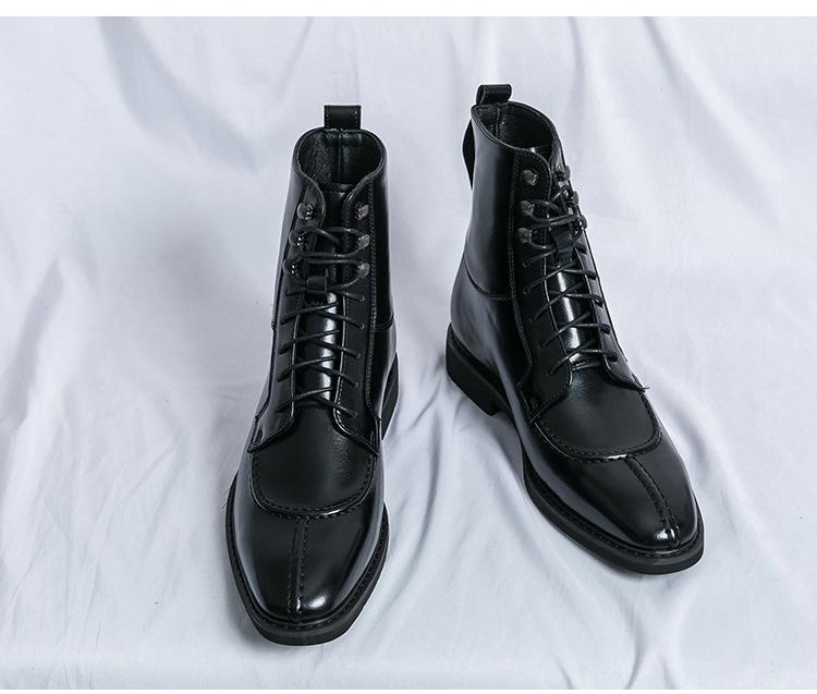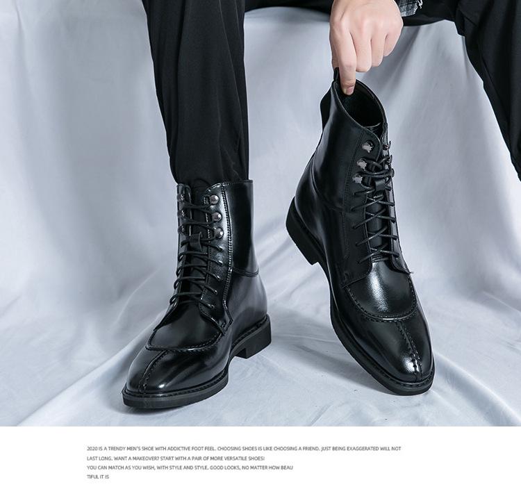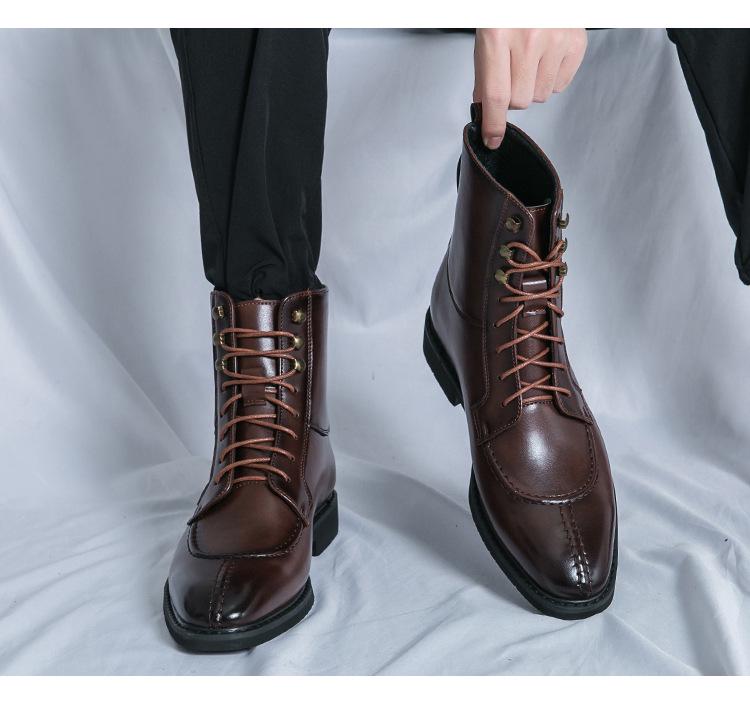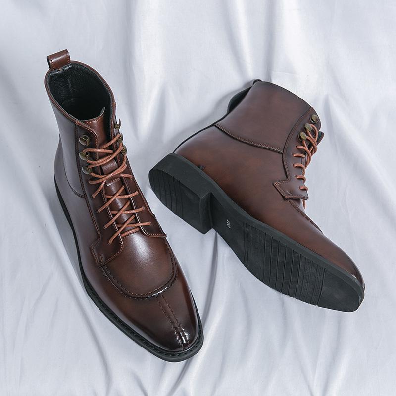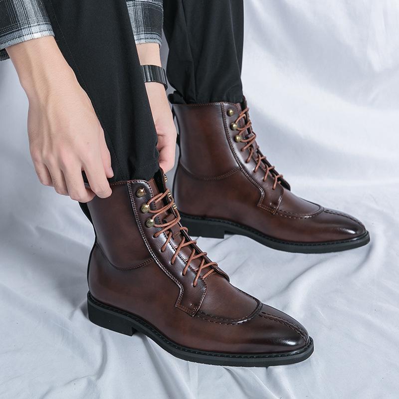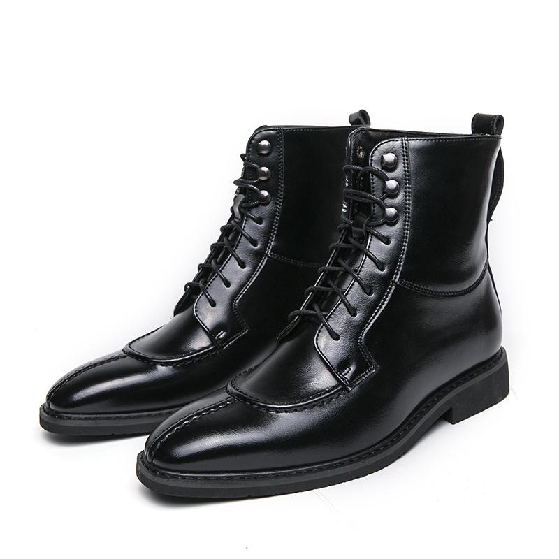 Мужская мода Осень Кожаные ботильоны на шнуровке с острым носком - Большие размеры Формальная и повседневная обувь хай-топ