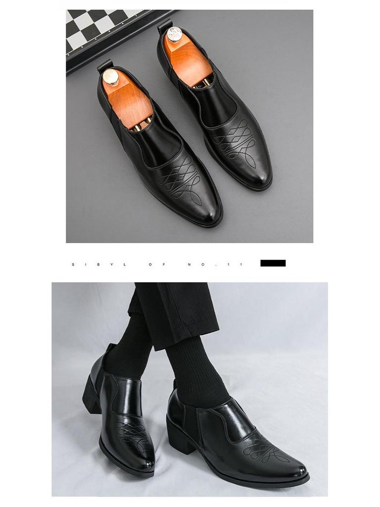 Мужские кожаные слипоны большого размера с острым носком, на высоком каблуке, кубинские - формальные, повседневные, в винтажном стиле
