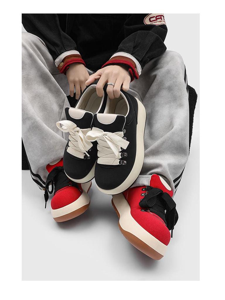 Мужские уродливо-милые повседневные туфли-хлебушки: Кроссовки на толстой подошве, увеличивающие рост, с круглым носком, низкие, на шнуровке, для весны и лета (208).