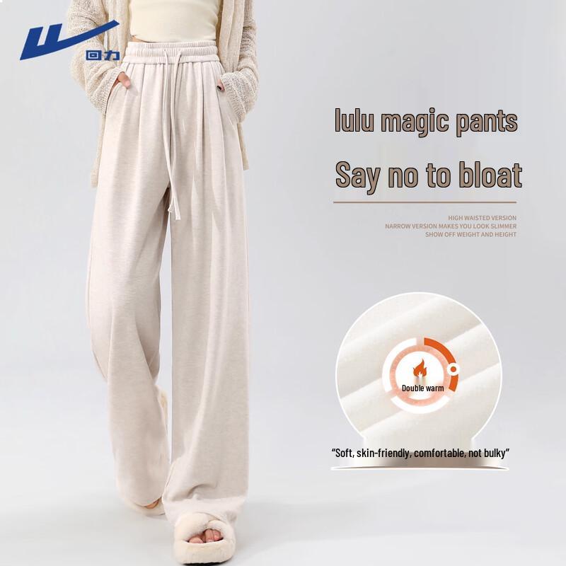 Huili Women's Fleece-Lined Wide-Leg Casual Sweatpants