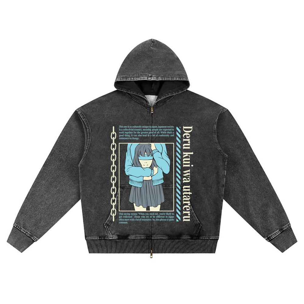 DTG print Knitted Denim Zip-Up Hoodie anime streetwear 32 Brother Print Zipper Hoodies
