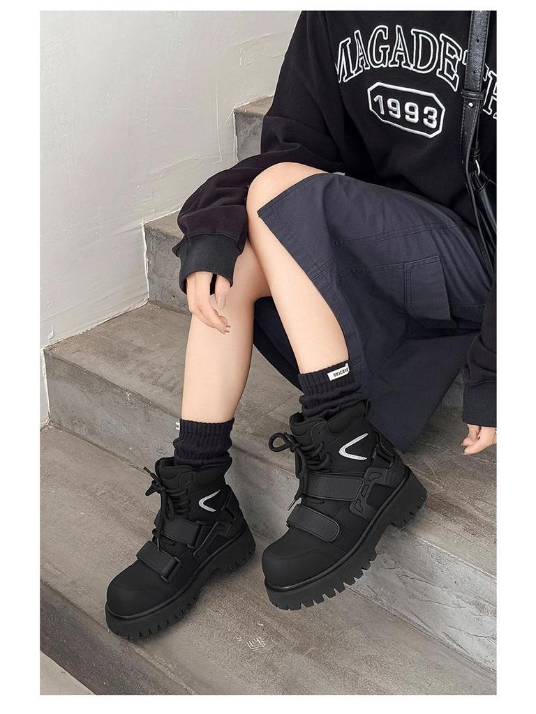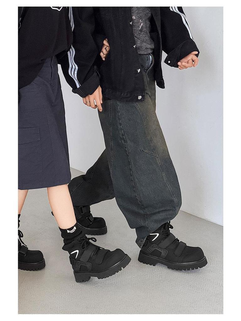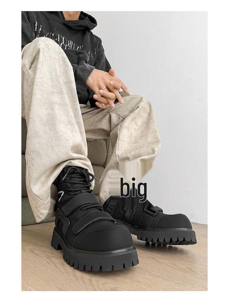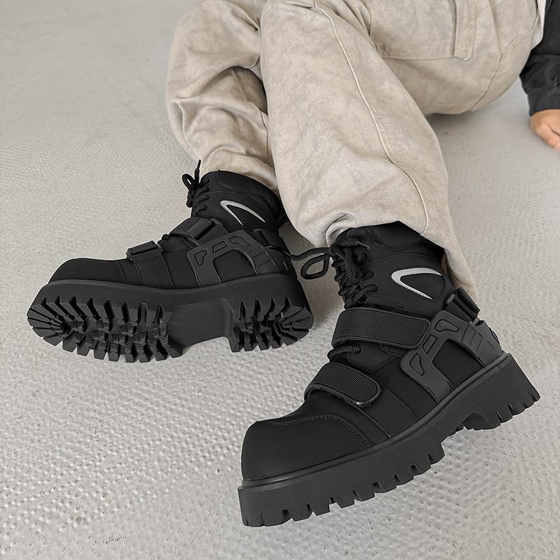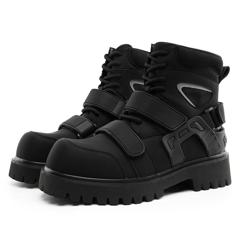 Нишевые осенние ботинки-мартенсы на липучках с высоким голенищем унисекс для мотоциклистов с увеличением роста