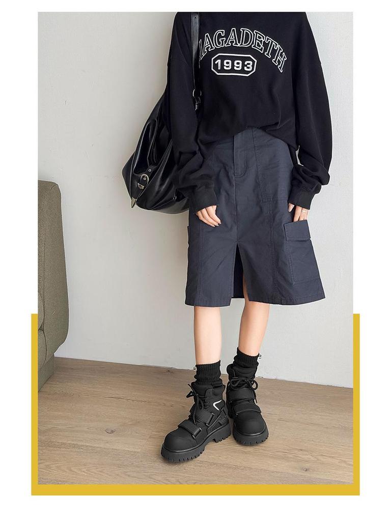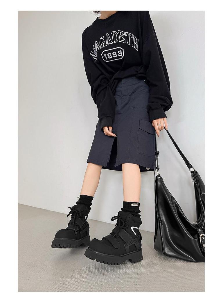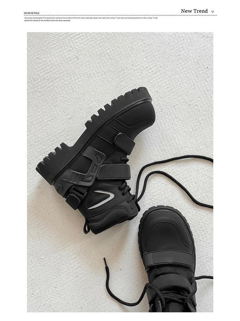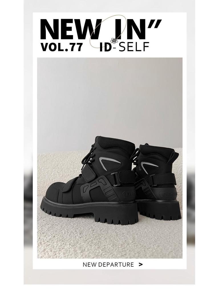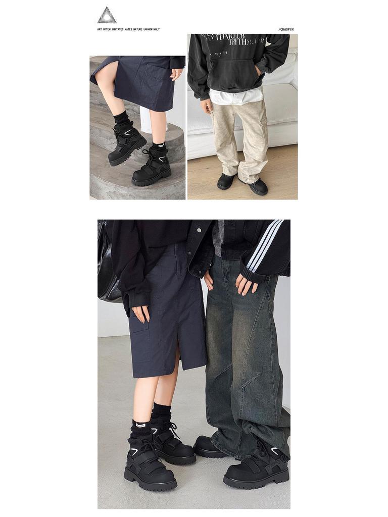 Нишевые осенние ботинки-мартенсы на липучках с высоким голенищем унисекс для мотоциклистов с увеличением роста