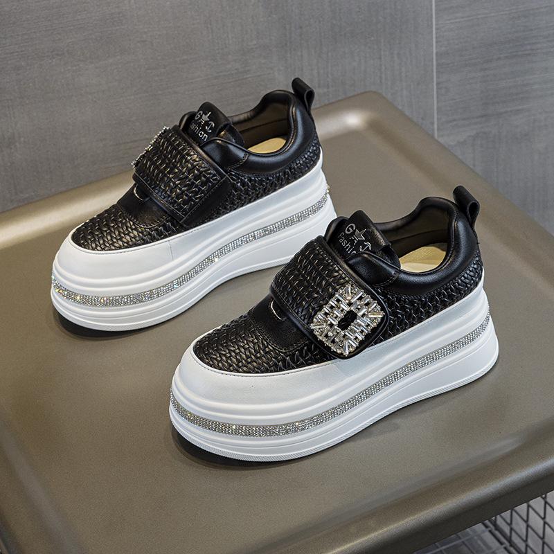 Вступайте в стильный комфорт с этими женскими кроссовками со стразами, идеально подходящими для осеннего сезона. Эти кроссовки, изготовленные из премиальной коровьей кожи для верха, предлагают нотку элегантности и долговечности.. Разработанные с толстой резиновой подошвой, они дают небольшой прирост высоты, без особых усилий улучшая ваш внешний вид.. Подкладка из искусственной кожи обеспечивает удобную посадку, что делает эти кроссовки идеальными для повседневной носки.. Эти модные кроссовки с удобной застежкой-липучкой обеспечивают легкое надевание и снятие, что идеально подходит для тех, кто всегда в движении.. Белый цвет добавляет свежий, универсальный штрих, делая их обязательным дополнением к вашей коллекции обуви.