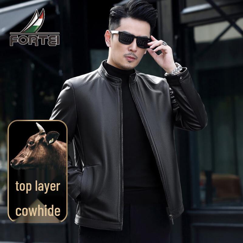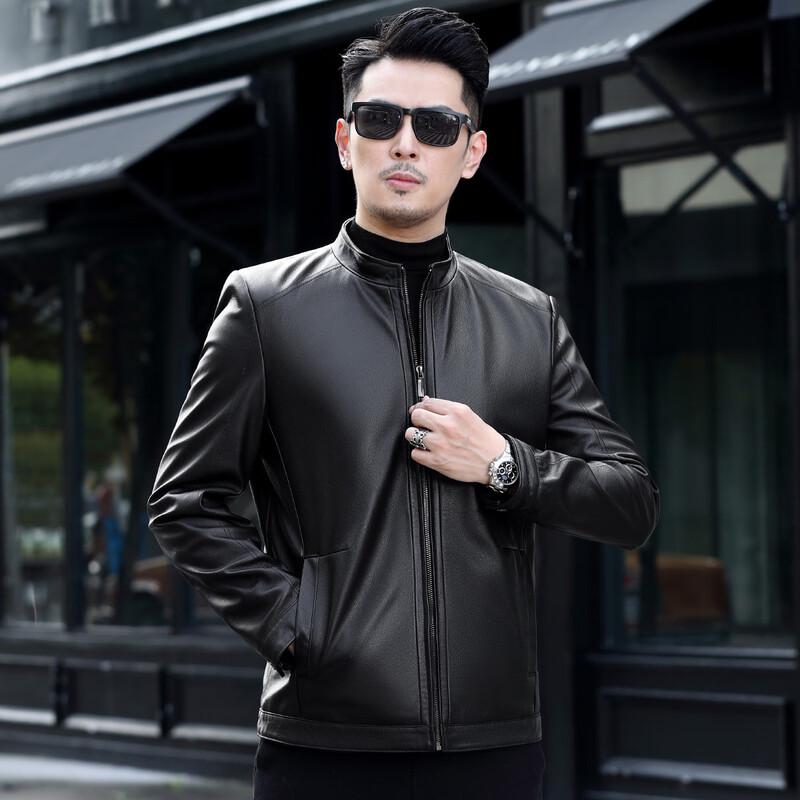 Men's Top-Grain Leather Stand Collar Jacket