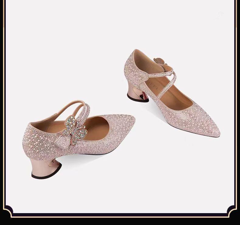 Женские туфли на толстом каблуке с жемчужным бантом и стразами для свадьбы - Весенняя коллекция 2025